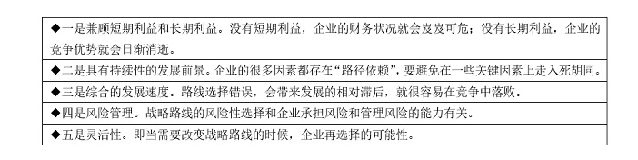 表1 制定戰(zhàn)略路線(xiàn)必須遵守一些基本的判斷準(zhǔn)則