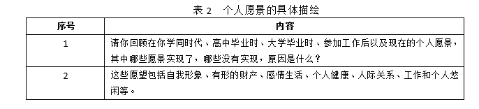 表2 個(gè)人愿景的具體描繪
